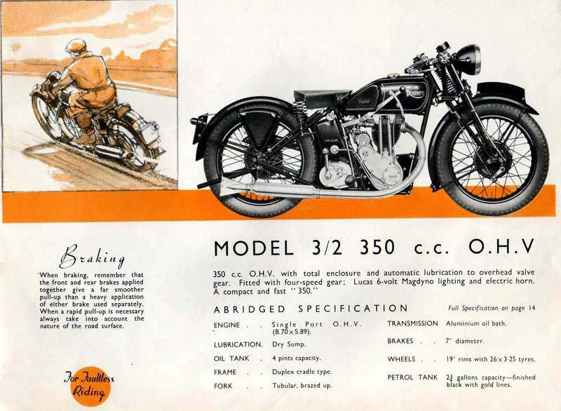 Valentin Page začátkem 20. let, šéfoval designu výroby motorů J.A.P., vyvinul motor 350 ohc, který v Brooklands dosáhl mnoha rekordů. Navrhl také desmodromický rozvod, který nikdy nepostoupil do výroby. Od roku 1925 pracoval v Arielu, kde s Edwardem Turnerem pracoval například na Ariel Aquare Four. V roce 1932 přešel do Triumphu, kde radikálně přepracoval celý sortiment motocyklů, až na typ XO 150 cc. Nová řada motocyklů vycházela v principu z motocyklů Ariel. Osmnáct nových modelů pro rok 1934 byly jednoduché, dlouhozdvihové jednoválce s rozvodem SV a OHV s uzavřenými rozvody, spolehlivé a snadné na údržbu. Motor byl typu Pre Unit – samostatná převodovka a motor. Na pravé straně motoru bylo soukolí ozubených kol, pohánějicí magdynamo. Na levé straně poháněla kliková hřídel primárním řetězem mokrou spojku, která byla zapouzdřena do hliníkového dvoudílného krytu. Rámy motorek se vyznačovaly velkými opracovanými odlitky a masivními trubkami. Modelové řady používaly jednotných komponentů, čímž se snížily náklady na výrobu. Motocykly byly standardně vybaveny již zastaralým ručním řazením, pouze za příplatek se montovalo nožní. Řada začínala na malých motocyklech 2/1 250 OHV a šla přes 350 SV/OHV až na 5/10 500 OHV, což byla sportovní verze se dvěma výfuky. Levnější motocykly měly černě lakovanou nádrž, luxusní měly nádrž chromovanou s lakovanými boky.