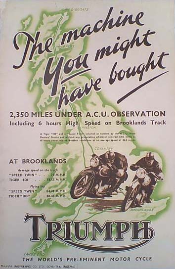 Dvouválce Triumphu byly novými hvězdami britského motocyklového průmyslu, ale mnozí jezdci zůstávali přesvědčení, že jednoválcové stroje jsou silnější. Aby Turner dokázal odolnost svých nových produktů, v březnu roku 1939 vytáhl nový Speed Twin a Tiger 100 z prodejních skladů a předal motorky unii Auto-Cycle Union, která schvalovala časové zkoušky a závody. Unie pak podrobila tyto dva stroje pořádnému výprasku na silnici a okruhu.