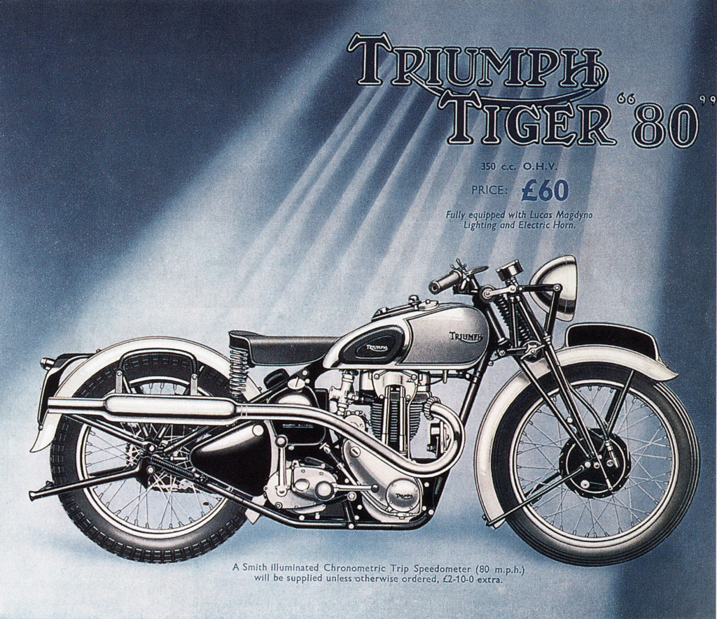 Novou, přepracovanou řadu motocyklů nazval Tiger, což ještě více zvýšilo zájem o ně. Vznikly Tiger 70 – 250 OHV, Tiger 80 – 350 OHV a Tiger 90 – 500 OHV. Číslo v názvu byla rychlost, jakou tyto tovární motocykly uměly jezdit. Motocykly měly chromované nádrže, černý rám s vidlicí a olejovou nádobkou a stříbrně lakovanou nádrž s modrým linkováním. Blatníky byly buď černé se stříbrným pruhem uprostřed nebo stříbrné s černým pruhem a modře linkované. Na nádrži byl umístěný panel s přístroji, včetně vypínače světel. Přední světlo Lucas 8″ celochromové, bez ovládacích prvků. Motocykly byly standardně vybaveny chronometry Smiths, poháněné z předního kola, soukolí bylo schováno v brzdovém bubnu. Přední kolo bylo 20ti palcové, zadní 19ti. U všech 3 motocyklů bylo možné vybrat si výfuk vedený vrchem nebo spodem a mezi silničním nebo hrubším dezénem pneumatik.. Motocykly působily lehce a velice elegantně.